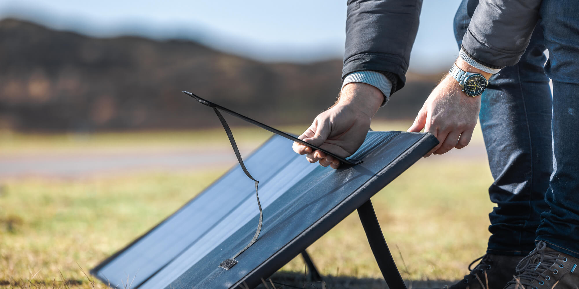 Dank des Ladereglers können Sie mit diesem tragbaren Solarpanel neben Kraftwerken auch andere Arten von (Standalone-)Batterien laden, zum Beispiel das Wohnmobil oder das Boot. Der Laderegler ist mit einem LCD-Display ausgestattet, mit dem Sie ganz einfach das richtige Setup für Ihren Batterietyp auswählen können. Darüber hinaus ist der Laderegler mit zwei USB-Anschlüssen ausgestattet, mit denen Sie beispielsweise Ihr Telefon oder Tablet direkt aufladen können.